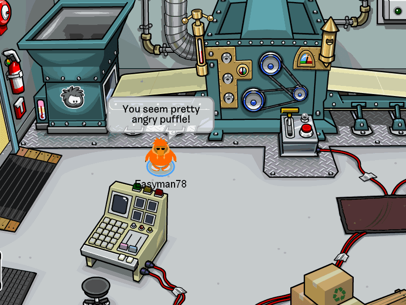 The next pin is located at the Recycling Plant. It is a black puffle pin.